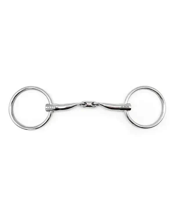 Kevin is a double-jointed stainless steel bit with a special lockup function. The mouthpiece has a tongue relief but locks upwards, which can be good for horses with a low palate and sensitive bars who still prefer a tongue relief.