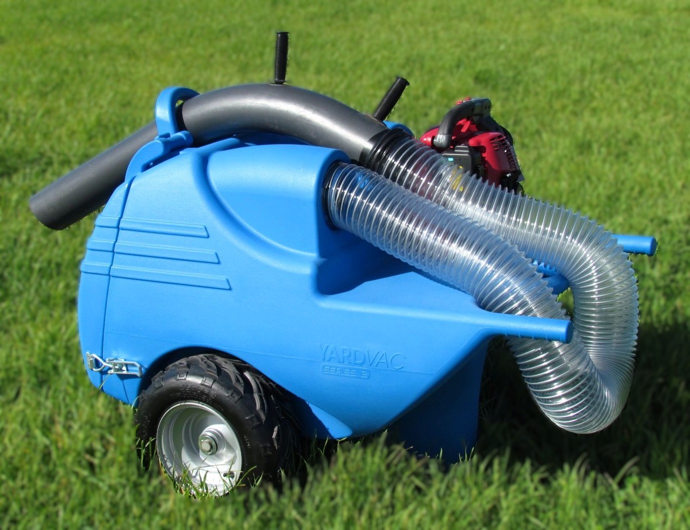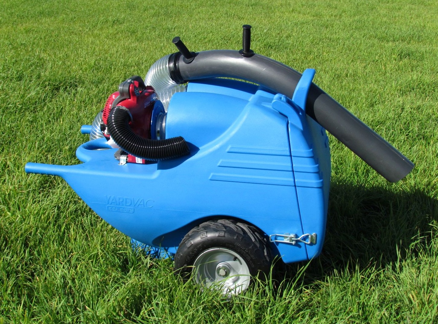 A push around model – no need for a tow vehicle – The Greystone Yard Vacuum 200L (or 1 – 2 Wheelbarrow loads)